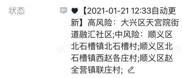 前两天,看见公司有一些同学利用一些技术手段动态更新飞书签名,有人实时更新微博热搜,有人春节放假倒计时,还是挺有趣的,正巧北京这几天疫情比较紧张,我就也写了一个服务在飞书签名上定时更新北京的风险地区。